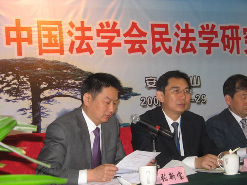 中国法学会副会长孙在雍,安徽省政法委副书记、安徽省法学会副会长苏泽泉,安徽大学副校长王源扩教授,安徽省黄山市政法委副书记汪建设,我国台湾东吴大学潘维大教授也先后致辞。民法学研究会秘书长、中国人民大学法学院张新宝教授作2006年年会工作报告。