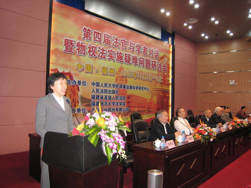华东法大学高富平教授主持了用益物权,担保物权法律实施中的问题与对策的讨论。主要围绕以下七大问题进行了深入的探讨:一是让与担保与质权在法律实务中的关系问题;二是农村小产权房问题和农村土地承包问题。基于对“三农”的关注,学者对此兴趣颇浓。很多学者认为,农村土地的处分是正常的现象,但国家的管理也是必要的。三是应收账款的质押问题及应收账款顺位的问题。四是动产浮动抵押的界定问题。五是动产抵押的公示方法的合理性问题。六是票据抵押的问题,学者们指出,股票质押后,股东权、成员权照样行使,但股票的处分权受到限制。七是土地承包经营权债权保护与物权保护的区别。学者们认为,如果用债权保护,债权让与要通知债务人,债务的承担要债权人承诺;如果用物权保护,不要任何人的意思表示,就可以出卖。
