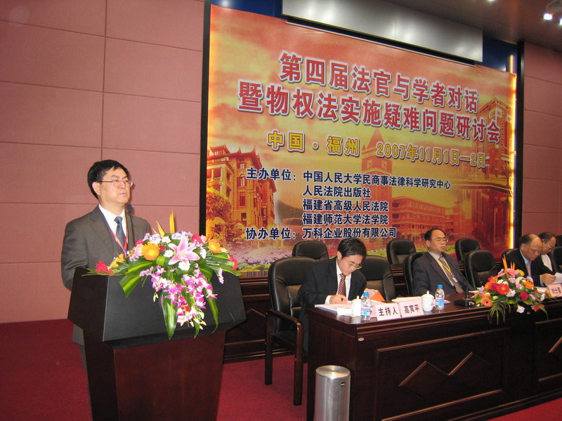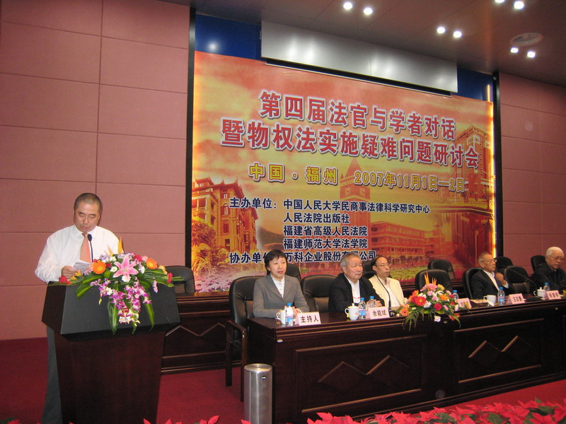主持人致开场白之后,日本上智大学法学院加藤雅莘教授首先发言,加藤教授认为中国已从计划经济进入市场经济,而现今物权法中规定的国家、集体、私人三种所有制形式与现今中国的社会现状不相符合,因为单一的市场经济应配之于单一的所有制形式。我国学者复旦大学法学院刘士国教授对此进行了回应,认为多种所有制并存是我国的国情决定的,并且从根本上是不与中国的市场经济相冲突的,如股份有限公司的财产权。此后双方又就此问题进行了深入的交流,并其他与会人员也进行了积极探讨。