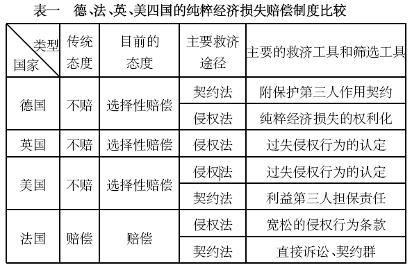 二、纯粹经济损失赔偿制度:德、法、英、美的比较法考察