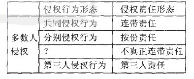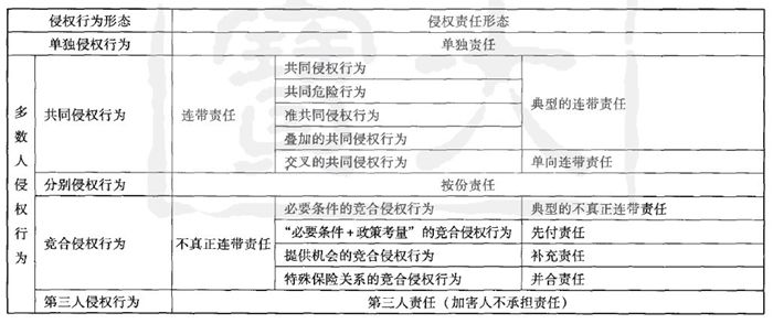 目次 一、竞合侵权行为概念的提出及意义 二、竞合侵权行为的概念界定与类型 三、竞合侵权行为的法律规则 四、多数人侵权行为形态与侵权责任形态的对接 在多数人侵权行为中,竞合侵权行为是我国侵权法学研究中还没有更多涉及的一个概念,但在立法上有较多的法律规范,在司法实践中也存在大量的侵权责任纠纷案件,缺少必要的法理研究和概括。本文从理论上对此进行研究,提出竞合侵权行为的概念,研究其法律适用规则,并说明其在多数人侵权行为形态体系中的地位以及与侵权责任形态体系的关系。 一、竞合侵权行为概念的提出及意义 (一)我国侵权法理论侵权行为形态与侵权责任形态对接中的空白 多数人侵权行为发生共同责任。共同责任所表述的,就是在侵权人是多人的情况下,侵权责任在不同的当事人之间进行分担的不同形态。这个概念,与大陆法系侵权法中的多数人之债概念,以及英美侵权法特别是美国侵权法的责任分担概念,是基本相同的。 共同责任分为按份责任、连带责任、不真正连带责任和第三人责任。按照现行的侵权法理论构造,多数人侵权行为与共同责任的对应关系是:分别侵权行为(即无过错联系的共同加害行为)对应按份责任;共同侵权行为对应连带责任;第三人侵权行为对应第三人责任;而不真正连带责任所对应的侵权行为形态类型没有理论上的概括。这就形成了侵权行为形态与侵权责任形态对接中的一个空白。一个不能否认的事实是,如果一种侵权责任形态类型没有一种可以对接的侵权行为形态类型,是不符合逻辑要求的,一定是在侵权法理论的构造上存在错误。 研究结果表明,不真正连带责任是一个相当复杂的体系,我国《侵权责任法》规定了大量以前没有规定的责任形态,实际上都属于不真正连带责任的特殊表现形式。例如,在第34条第二款、第37条第二款和第40条规定的补充责任,在第44条和第85、86条第二款规定的先付责任,与第41条至第43条和第68、83条规定的典型的不真正连带责任的规则均不相同,但又在本质上基本相同,我认为这属于不真正连带责任的特殊类型。因此我提出,不真正连带责任表现为四种类型,即:典型的不真正连带责任、先付责任、补充责任和并合责任,构成一个完整的不真正连带责任体系。 依照侵权法的逻辑要求,不同的侵权责任形态应当与不同的侵权行为形态相对应。那么,具有四种不同类型的不真正连带责任,它究竟与何种侵权行为形态相对应呢?我国目前的侵权法理论还没有很好地回答这个问题。这表明我国目前侵权法理论对侵权行为形态类型的概括是不完善的,还不能对应所有的侵权责任形态类型,存在新的侵权行为形态类型没有被传统侵权法理论所发现,或者说还缺少必要的理论概括。 多数人侵权行为形态与侵权责任形态对接的逻辑空白,可见下表: